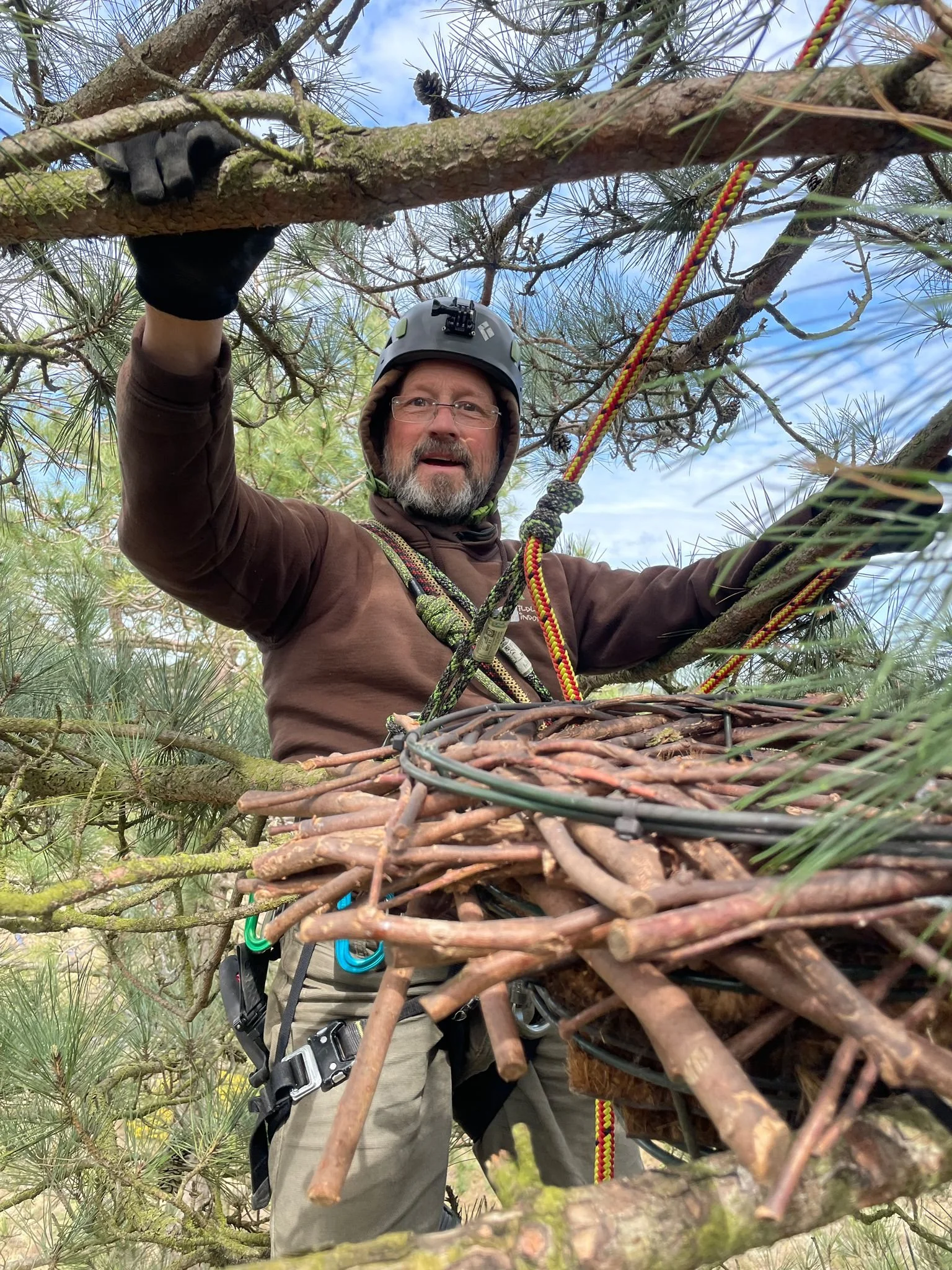 The installation work itself happens in the winter season whilst hobbies are still far to the south, wintering below the Sahara in south central Africa. We approach each site with care and employ technical tree climbing and rope access skills to access a specific tree where we know the hobbies have bred the previous year.