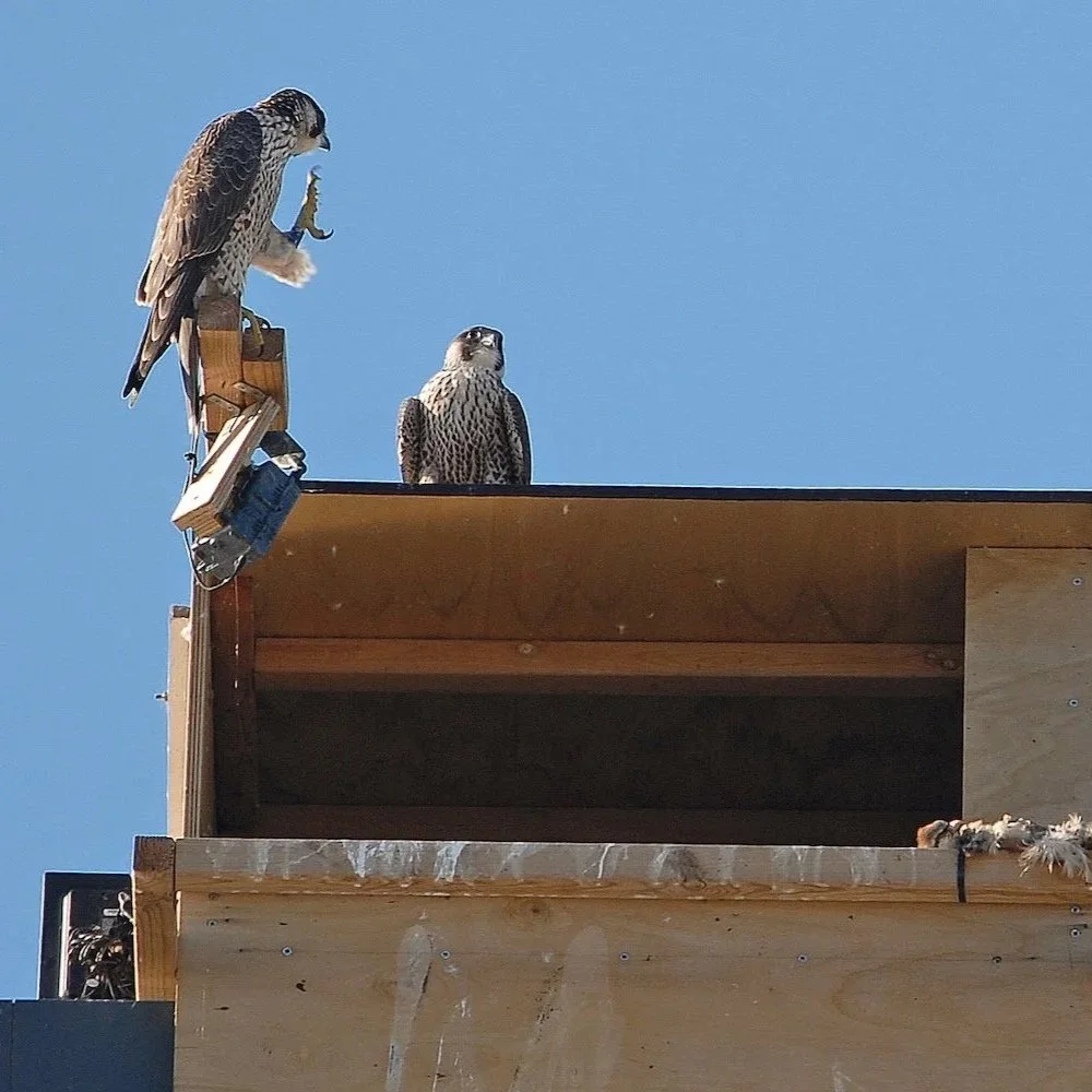 It really has been an amazing summer observing the adults and the four chicks. I got to watch all 6 birds in the air together and I understand so much better now how awesome peregrine falcons truly are. Did you know that in flight they can reach stooping speeds of 200-240mph plus making them one of the fastest, if not the fastest creature on Earth. And their eyes are eight times sharper than humans.