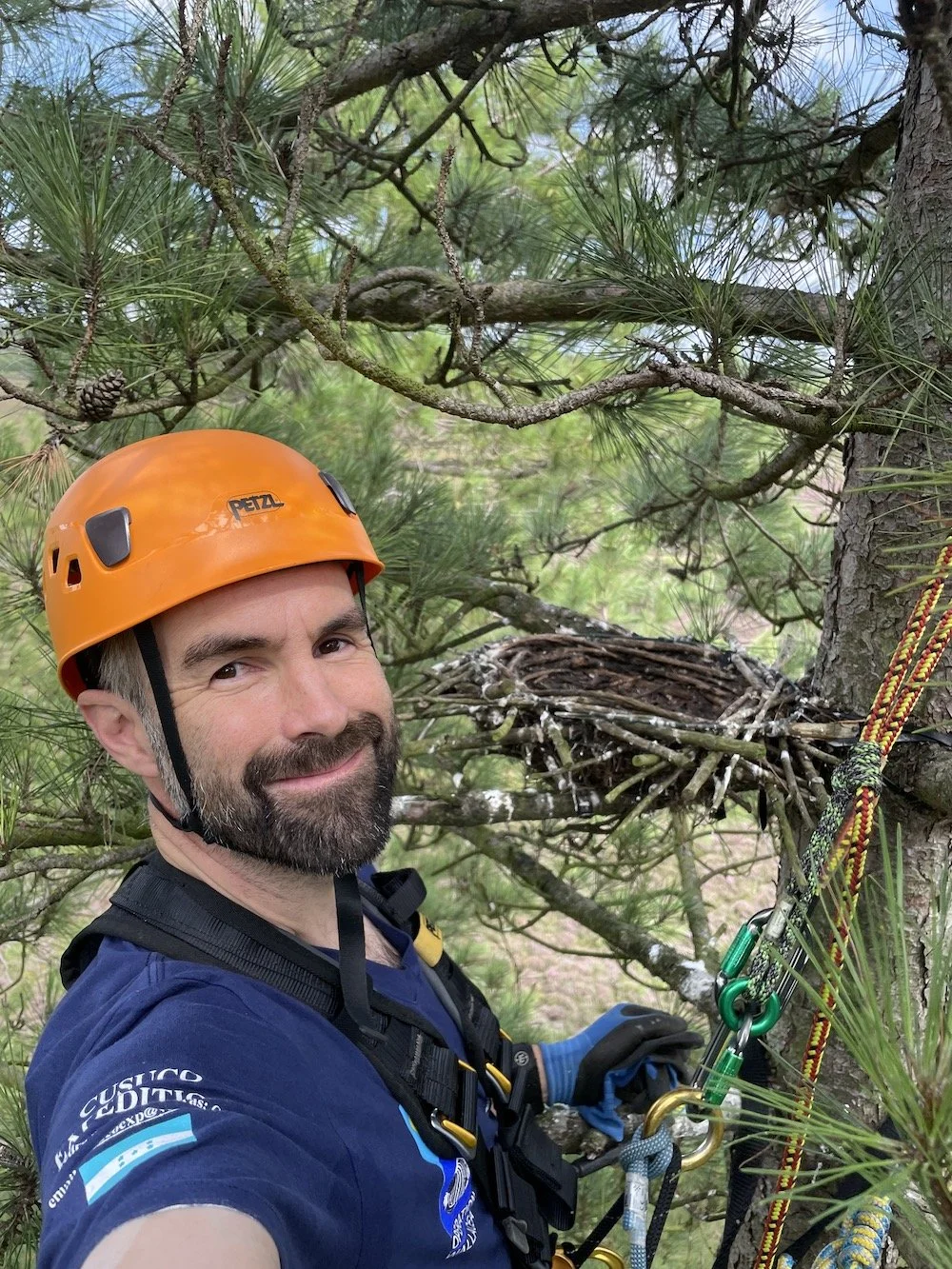 The monitoring work involves long hours in the field, lots biting insects and climbing trees. Working at height in trees involves managed risk and a thorough knowledge of the individual trees involved, such as where we have installed the nest baskets, also allows us to keep our climbers extra safe and our H&S team happy.